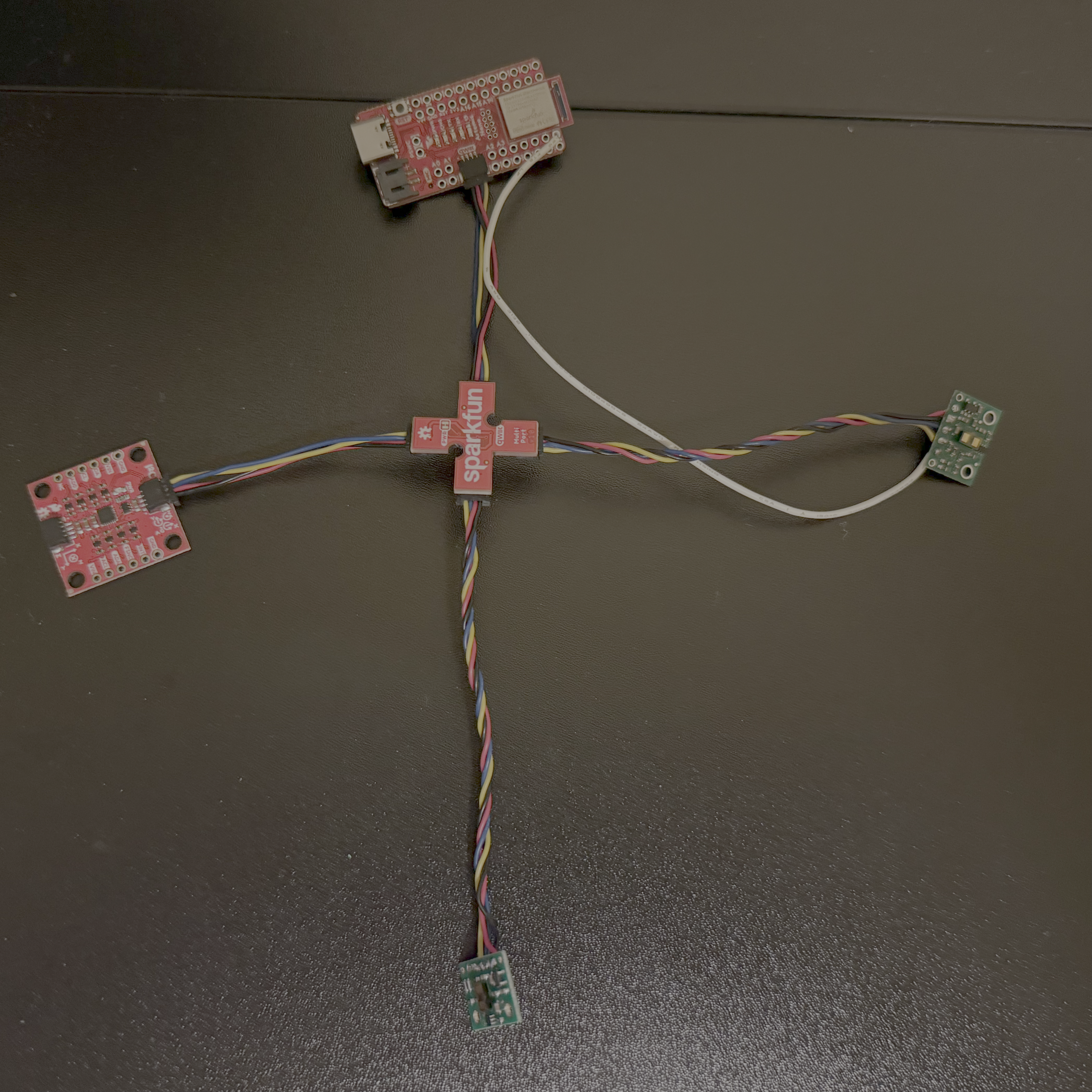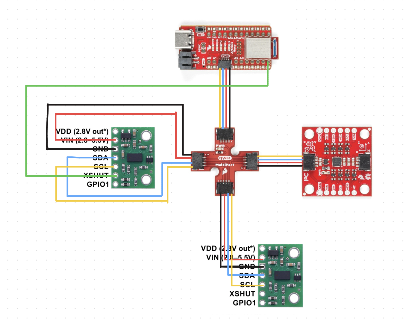 After completing the soldering, I connected the Artemis, the two ToF sensors, and the IMU together using the Qwiic breakout board.