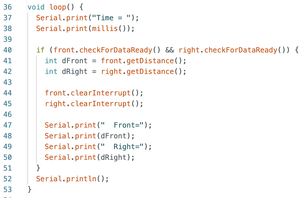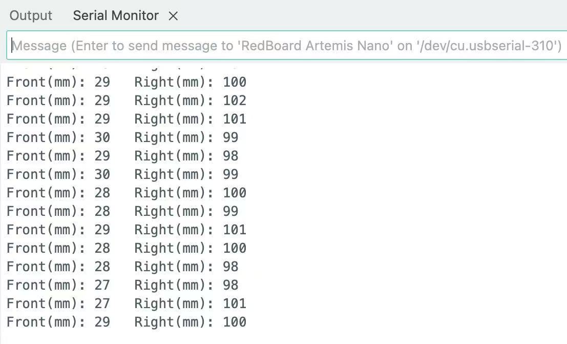 I waited until both ToF data were ready before outputting them. Calculations showed that the ToF data output frequency was approximately 10Hz, far lower than the Artemis clock frequency. Therefore, the main limiting factor was the ToF read speed.