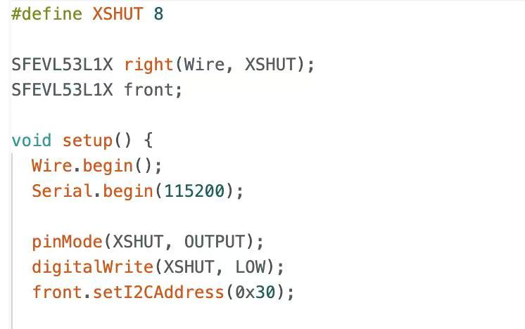 If we want to use two ToF sensors simultaneously, such as A and B, to avoid address conflicts on the I2C bus, we can connect the XSHUT pin of B to a GPIO on the Artemis sensor. During setup, first pull the XSHUT pin low to uniquely address A, then modify A's address, and finally pull the XSHUT pin of B high. This way, both ToF sensors can work simultaneously.